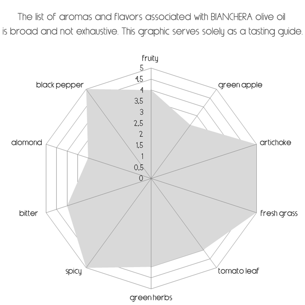 The Bianchera olive variety, native to the Istrian region, is known for producing robust, high-quality olive oil. This hardy tree thrives in harsh coastal climates and is highly resistant to cold, making it ideal for regions with cooler temperatures. Bianchera olives yield oil that is intensely green in color and bold in flavor. The oil is known for its strong, fruity character, with aromas of green herbs, artichoke, and freshly cut grass. It has a pronounced bitterness and a peppery finish, making it perfect for enhancing the flavor of heartier dishes, grilled meats, and robust salads.