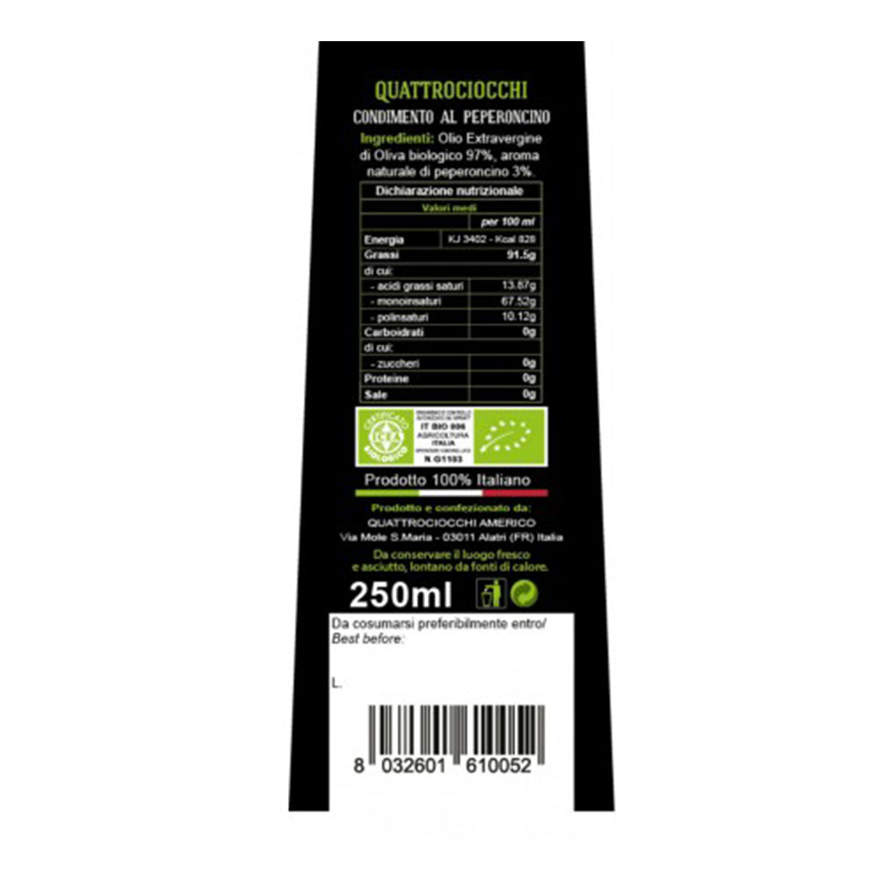 Quattrociocchi Chilli Pepper Infused Bio Extra Virgin Olive Oil (250ml)
